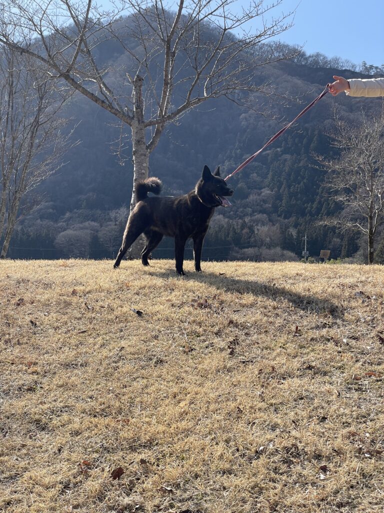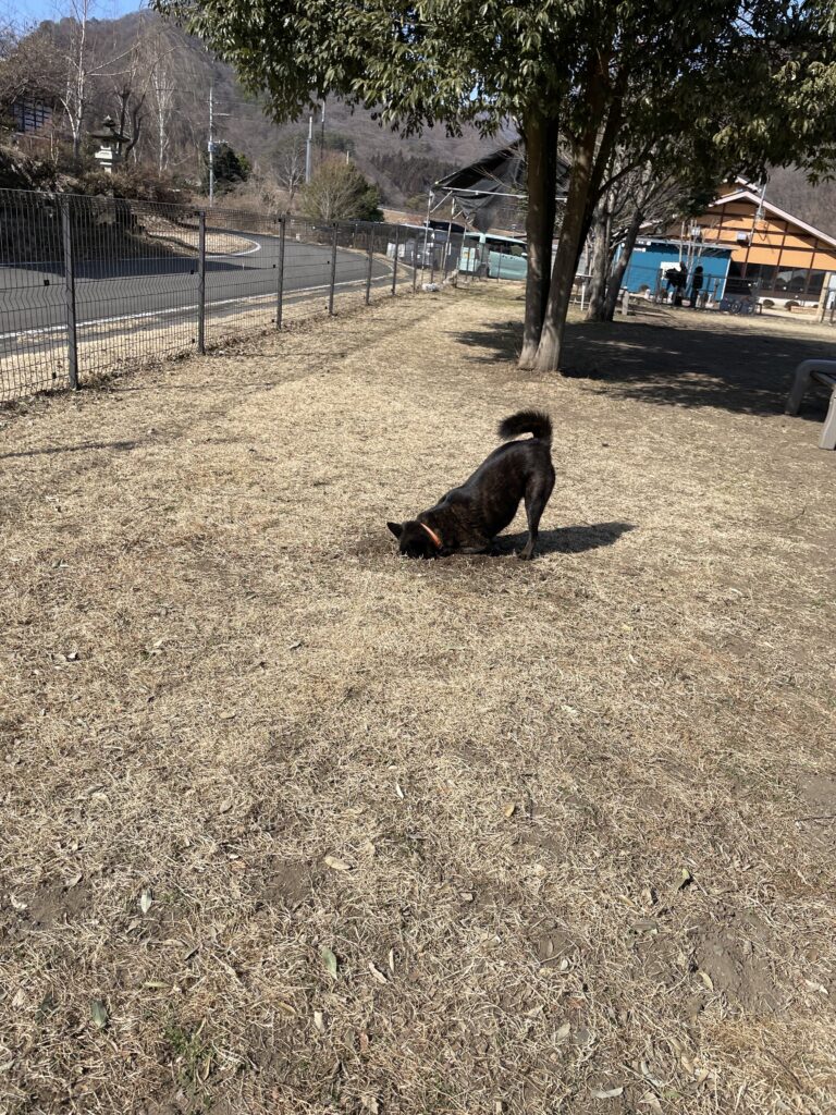 まめはドッグランで元気いっぱいに走り回り、気になる匂いを一生懸命チェック。