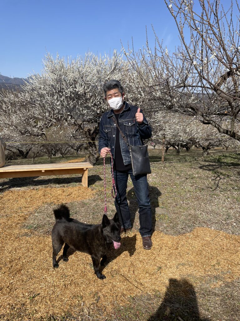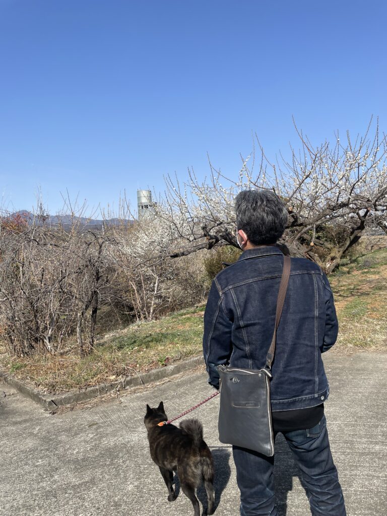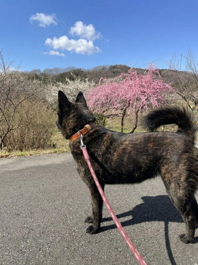 梅の木の下を歩きながら、あちこち気になる匂いをチェックして楽しそうにしていました。